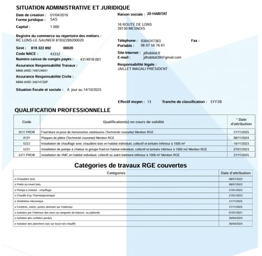 L’obtention du label RGE (Reconnu Garant de l’Environnement) est un gage de qualité et de compétence pour les entreprises spécialisées dans les travaux de rénovation énergétique. Chez JD Habitat, nous sommes fiers d'être certifiés RGE, ce qui témoigne de notre expertise en matière d’amélioration énergétique de l'habitat, et de notre engagement en faveur de l’environnement.